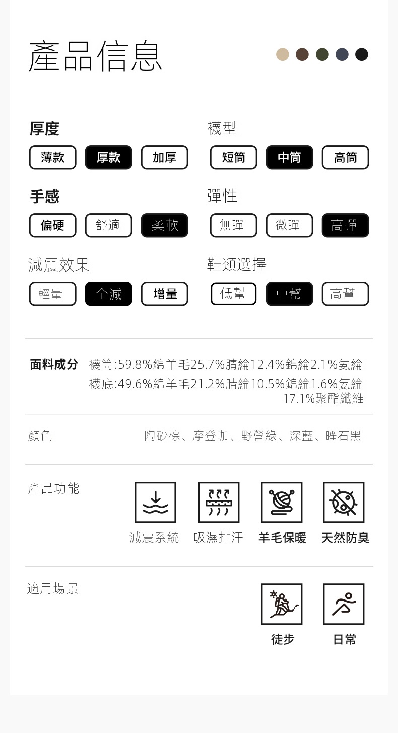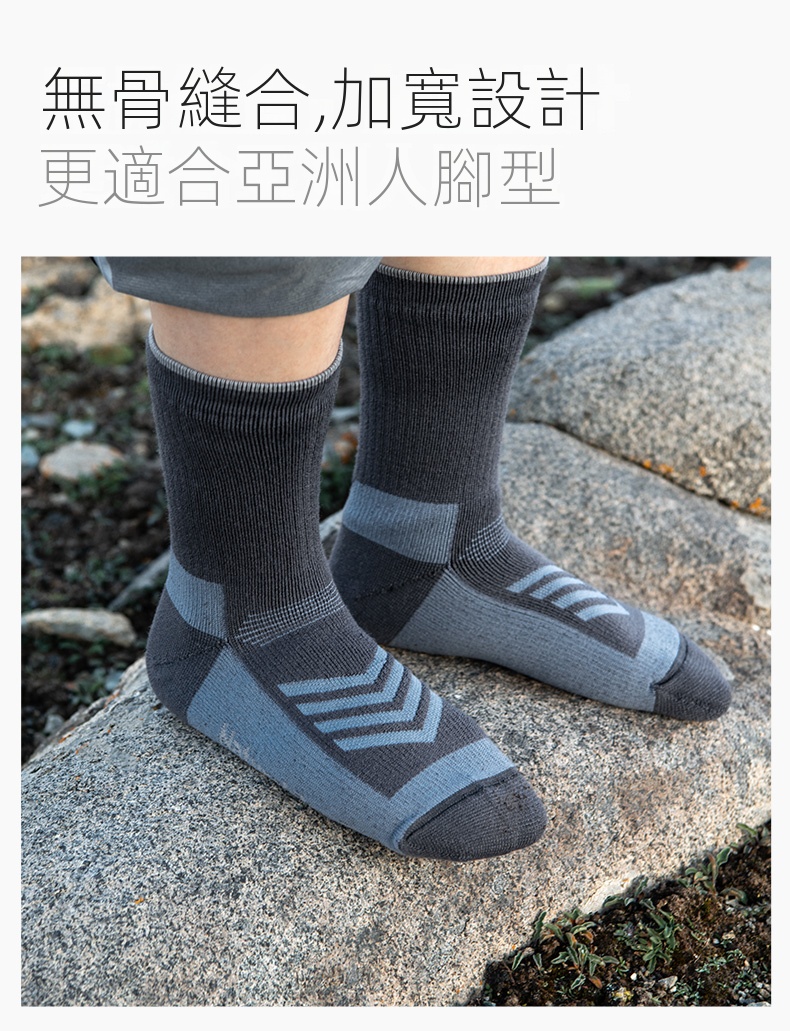 Naturehike Merino減震運動襪採用59.8%綿羊毛,具備優異的吸濕透氣與保暖性能,適合5~15℃環境。專為輕量徒步設計,適應1-3天長距離步行,特別推薦給中低海拔徒步愛好者。襪底採用增量減震技術,有效預防腳趾發脹,讓您多走10KM也不覺疲勞。內層毛圈設計吸濕排汗,保持雙腳乾爽。無骨縫合工藝貼合亞洲人腳型,彈力拉伸適配不同腳型需求。