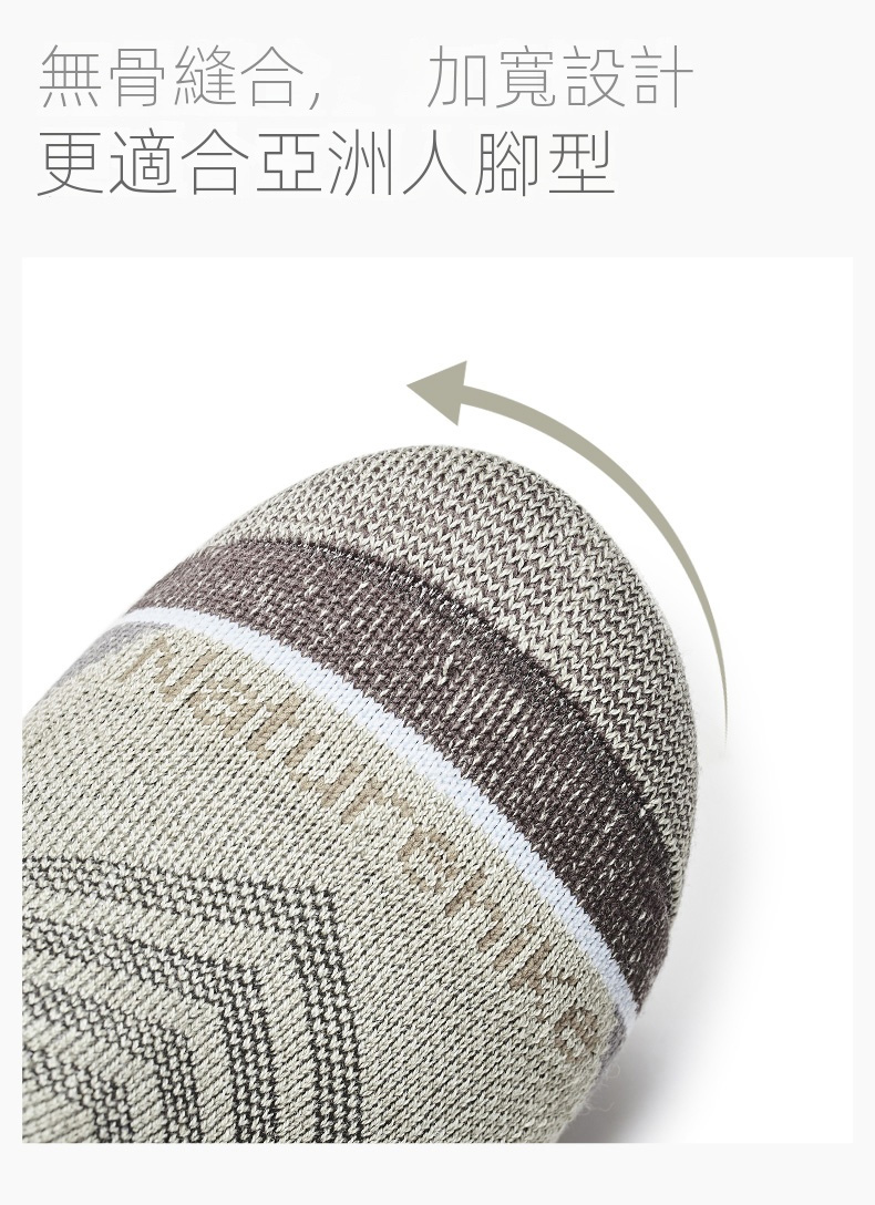 • 無骨縫合加寬襪頭直角設計,更貼腳跟,適合亞洲人腳型