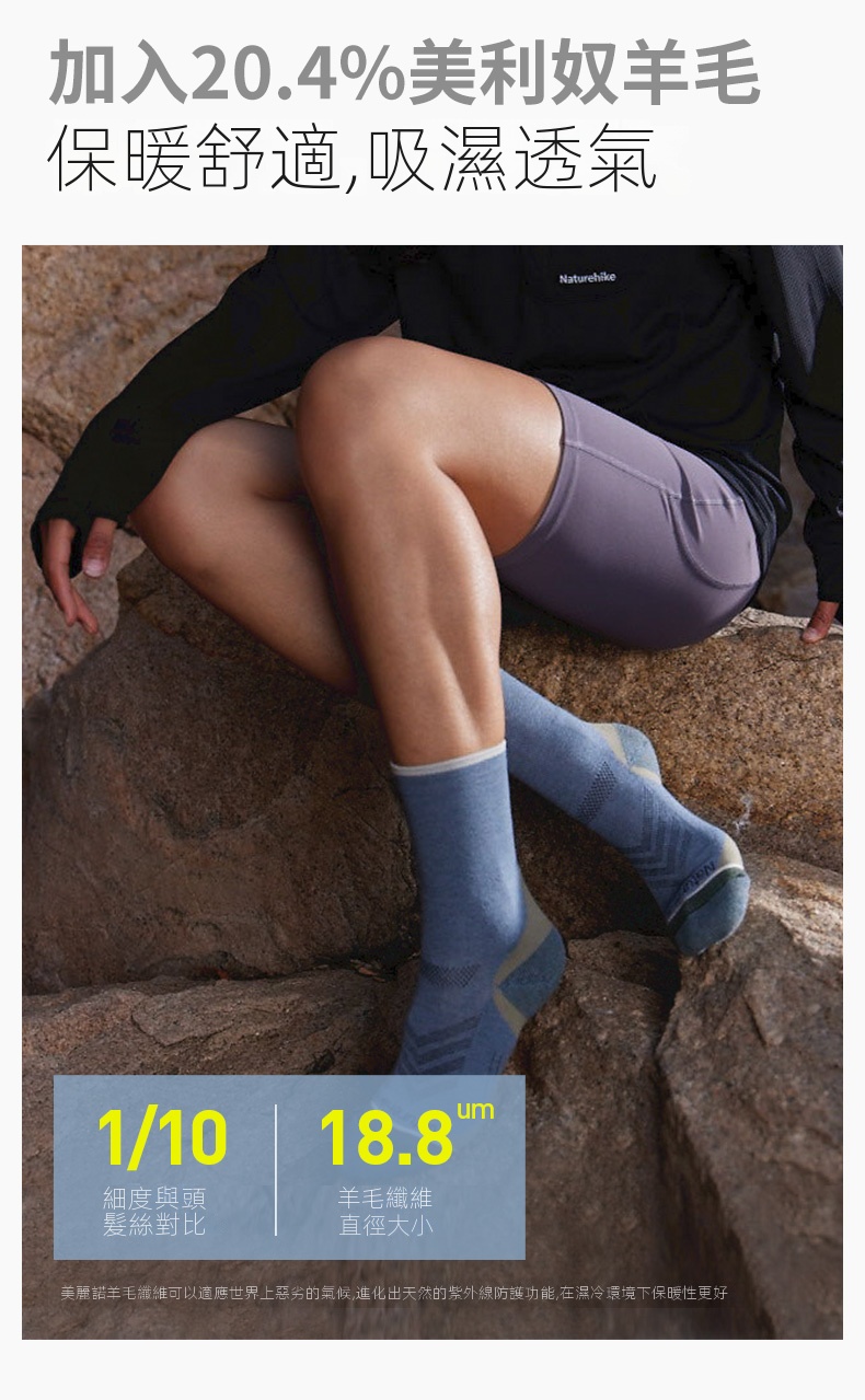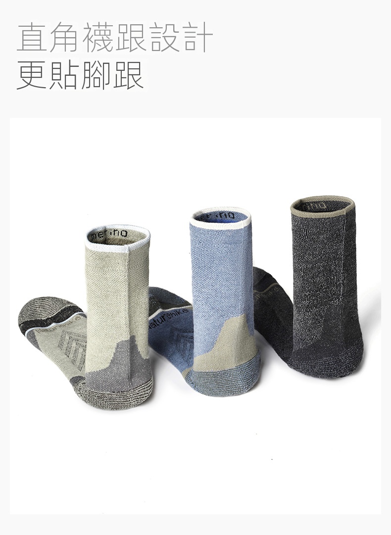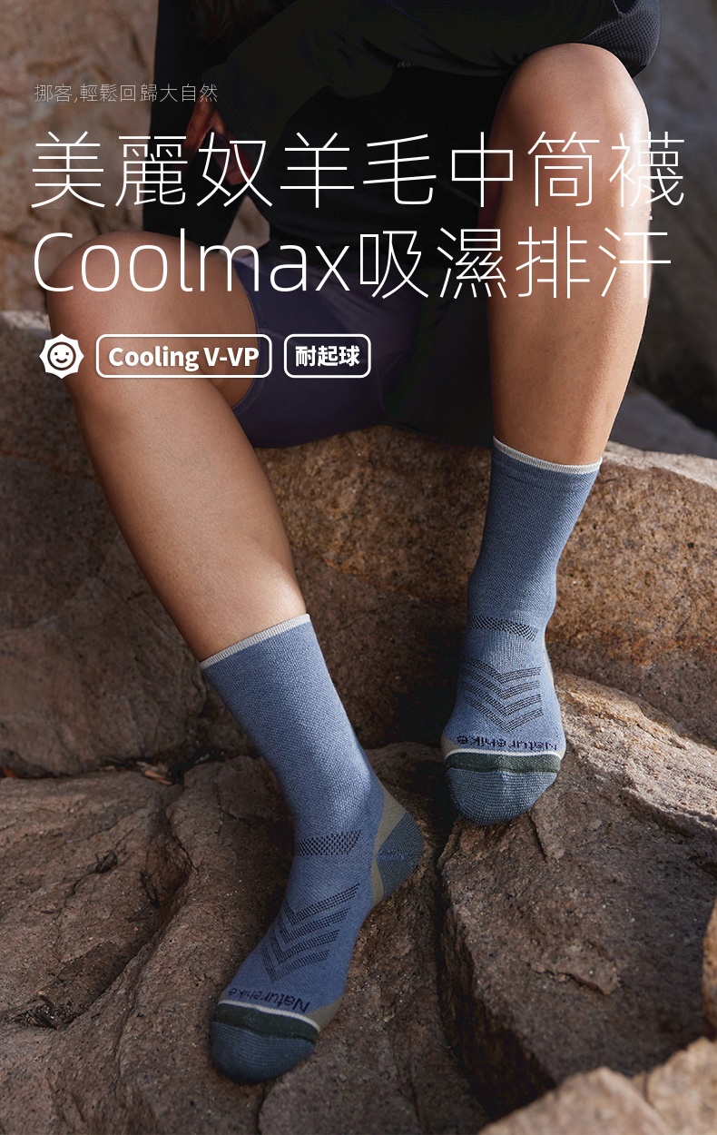 • 減震美麗奴羊毛中筒襪,適合露營和騎行等戶外活動