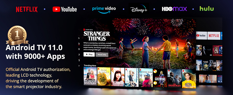 ETOE Seal Pro Android TV 投影機是一款集高品質投影與智慧功能於一體的家庭娛樂裝置。它搭載 Android TV 11.0 系統,內建 Chromecast 功能,支援 Netflix、YouTube 等主流串流應用程式。該投影機採用原生 1080P 分辨率,支援 4K 解碼,亮度高達 1000 ANSI 流明,即使在較亮環境下也能呈現清晰畫面。其自動對焦和梯形校正功能,讓投影設定變得輕鬆方便。此外,它配備杜比音效認證的雙 10W 揚聲器,帶來沉浸式聽覺體驗。全封閉式設計有效防塵,延長使用壽命。無論是家庭劇院還是辦公室演示,ETOE Seal Pro 都能提供出色的視覺與聽覺享受。