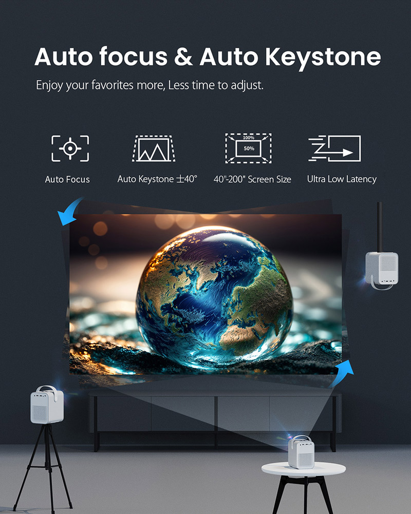 • 自動對焦和自動梯形修正±40°