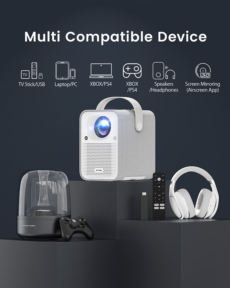 • 兼容多設備:TV Stick/USB、電腦、XBOX/PLAYSTATION、揚聲器/耳機、螢幕鏡射(Airscreen App)