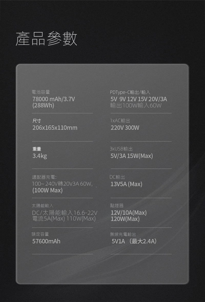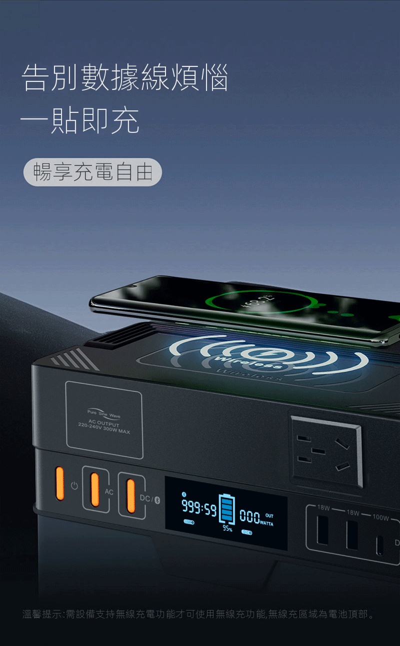 這款多功能儲能電源擁有288Wh的高效能電池,最大功率可達300W,輕鬆滿足各類設備的需求。其小巧輕便的設計,使其成為短途出行和戶外活動的理想伴侶。配備智能APP控制功能,讓您隨時隨地遠程監控電源狀態。此外,多端口設計支持同時充電,內建安全保護系統確保使用安全,無論是旅行、露營或家庭使用,都是您的最佳選擇。