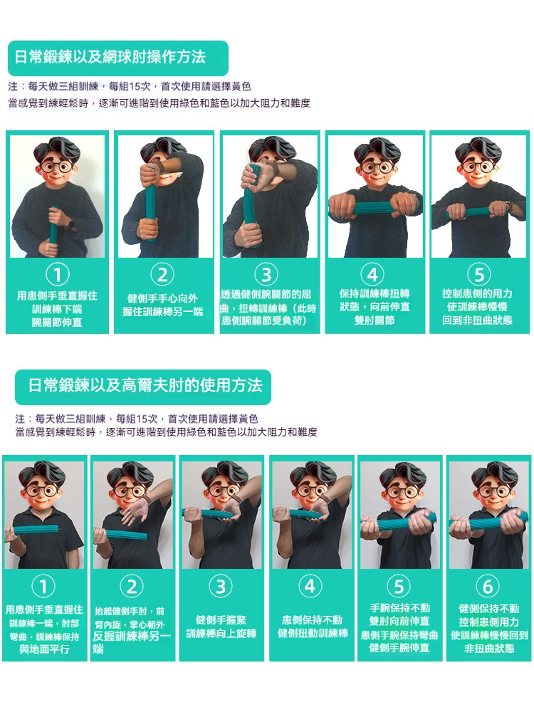 • 康復訓練:專為網球肘、高爾夫肘、滑鼠手等設計,助力手部康復