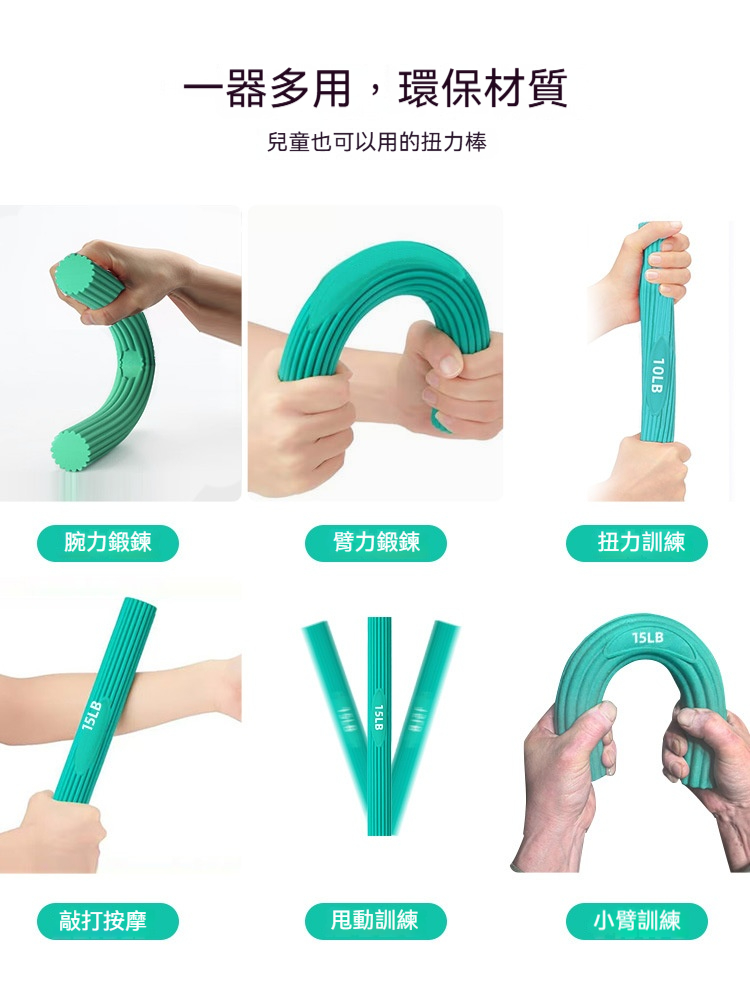 這款扭力阻力棒採用環保TPE材質製成,安全無毒,適合全家使用。它集多種功能於一身,可用於腕力訓練、臂力鍛鍊、扭力練習、敲打按摩和發洩解壓。特別適用於康復訓練,如緩解網球肘、高爾夫肘和滑鼠手,同時適合兒童、學生和成人進行手部肌力鍛鍊。提供多種阻力級別(5lb、10lb、15lb、25lb),滿足不同年齡和力量需求,輕便易用,是家庭健身和康復的理想工具。
