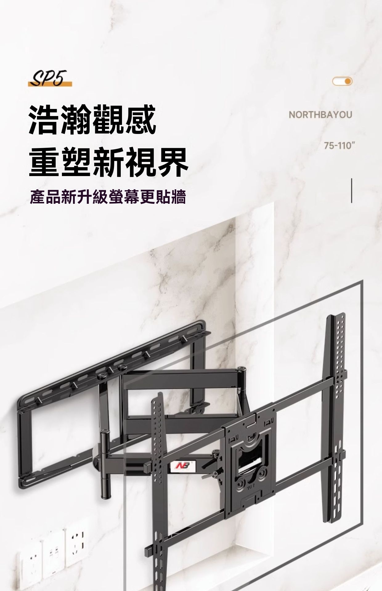Buy NB SP5 壁掛可伸縮旋轉電視支架 - 黑色 | 適用75-110英寸電視 | 90.9kg穩固承重 | 傾仰角可調節 price in outletexpress .com Hong Kong.In promotion and sale.