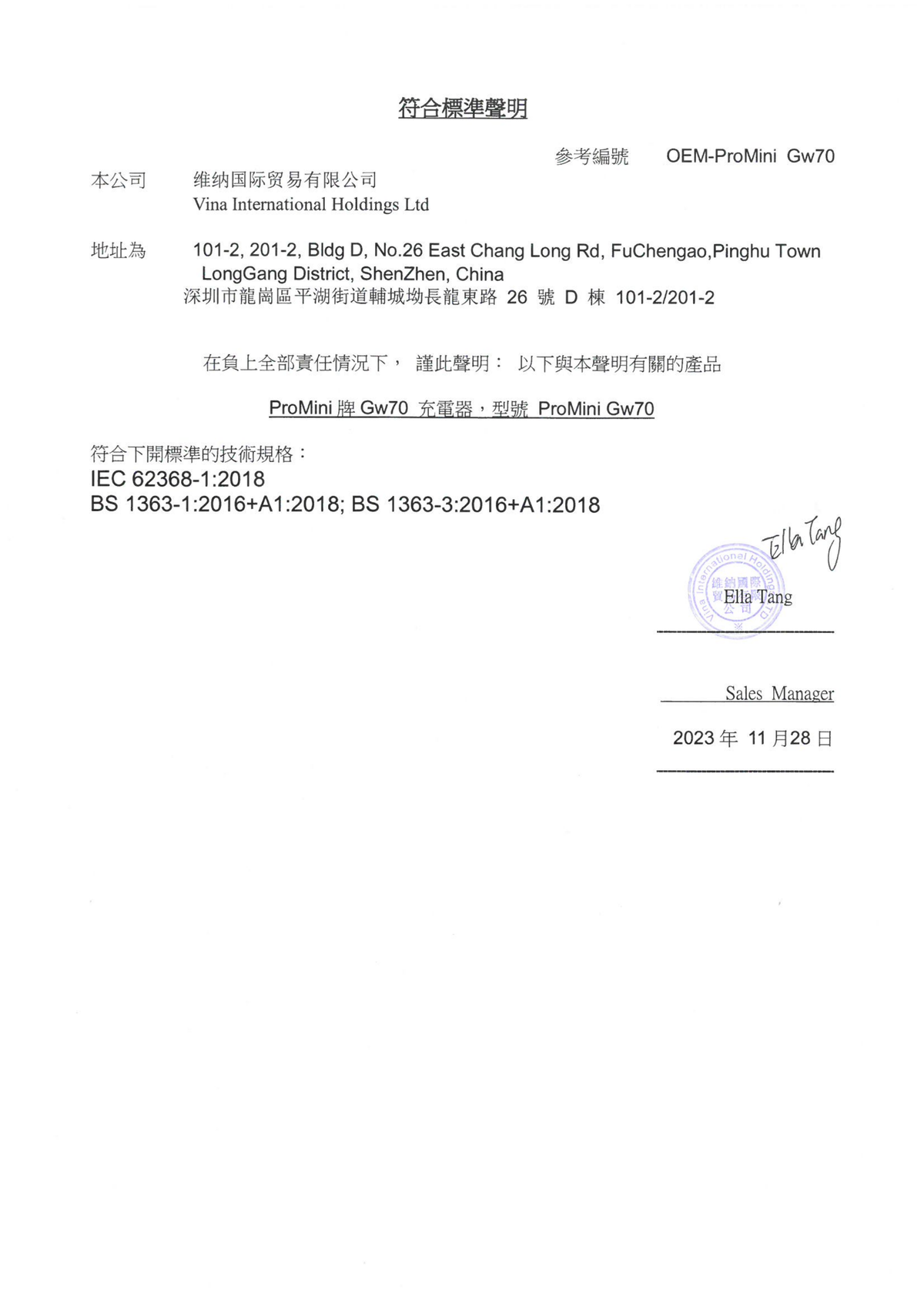 Buy ProMini Gw70 雙PD3.0 + QC GaN 70W快速充電器-白色 | 通過IEC62368-1國際認證 | 香港行貨 price in outletexpress .com Hong Kong.In promotion and sale.