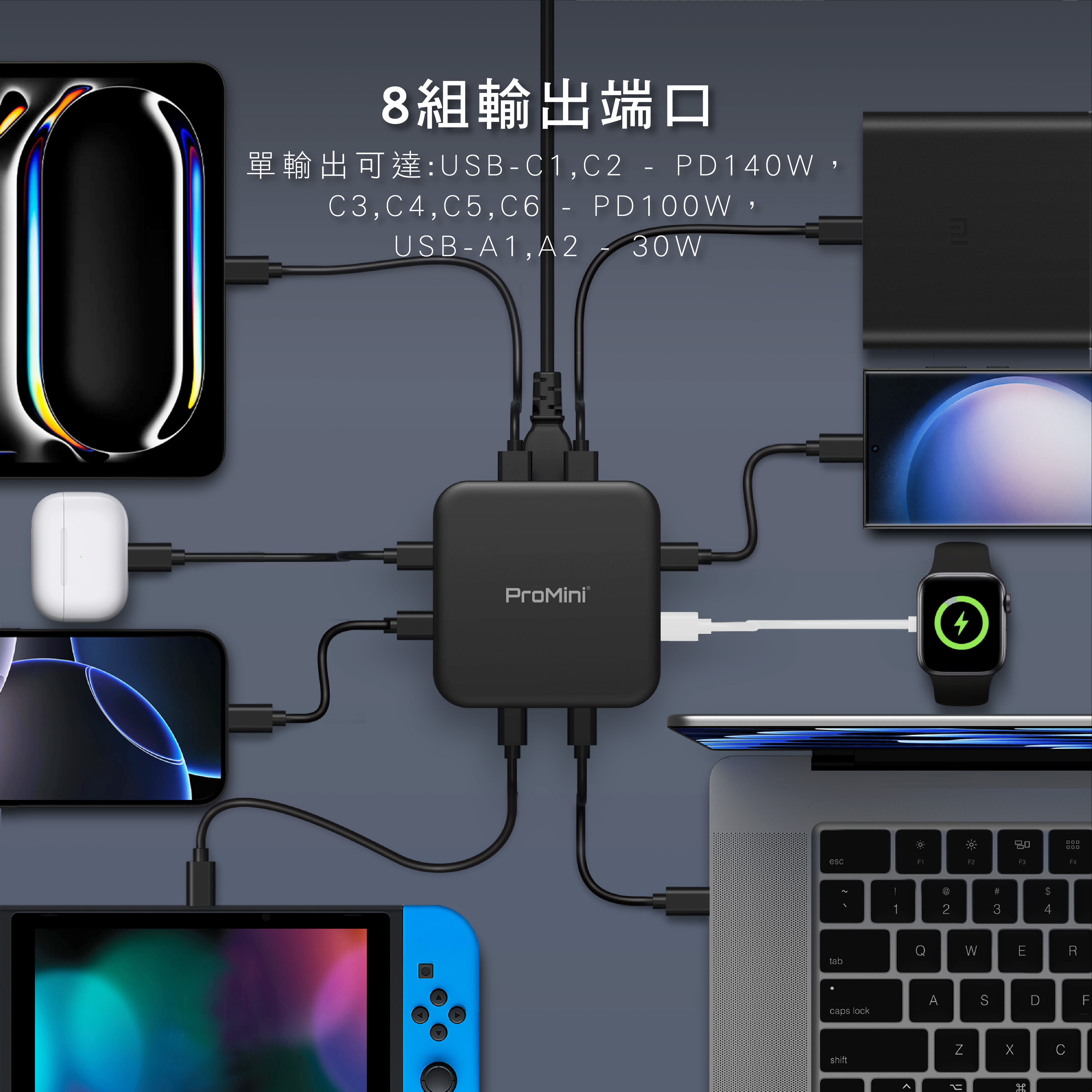 ProMini Gs380 Ultra是一款功能強大的八輸出PD3.1 GaN 380W快速充電器。它採用先進的氮化鎵技術,功率高達380W,能為多種設備快速充電。擁有八個輸出接口,可同時滿足手機、平板、筆記型電腦等多個裝置的用電需求,大幅提升充電效率。支援PD3.1協議,相容性強,適配市面上絕大多數主流數位產品。而且它設計緊湊,不佔過多空間,無論是放置在桌面使用,還是攜帶外出,都非常方便,是解決多設備充電難題的理想選擇 。