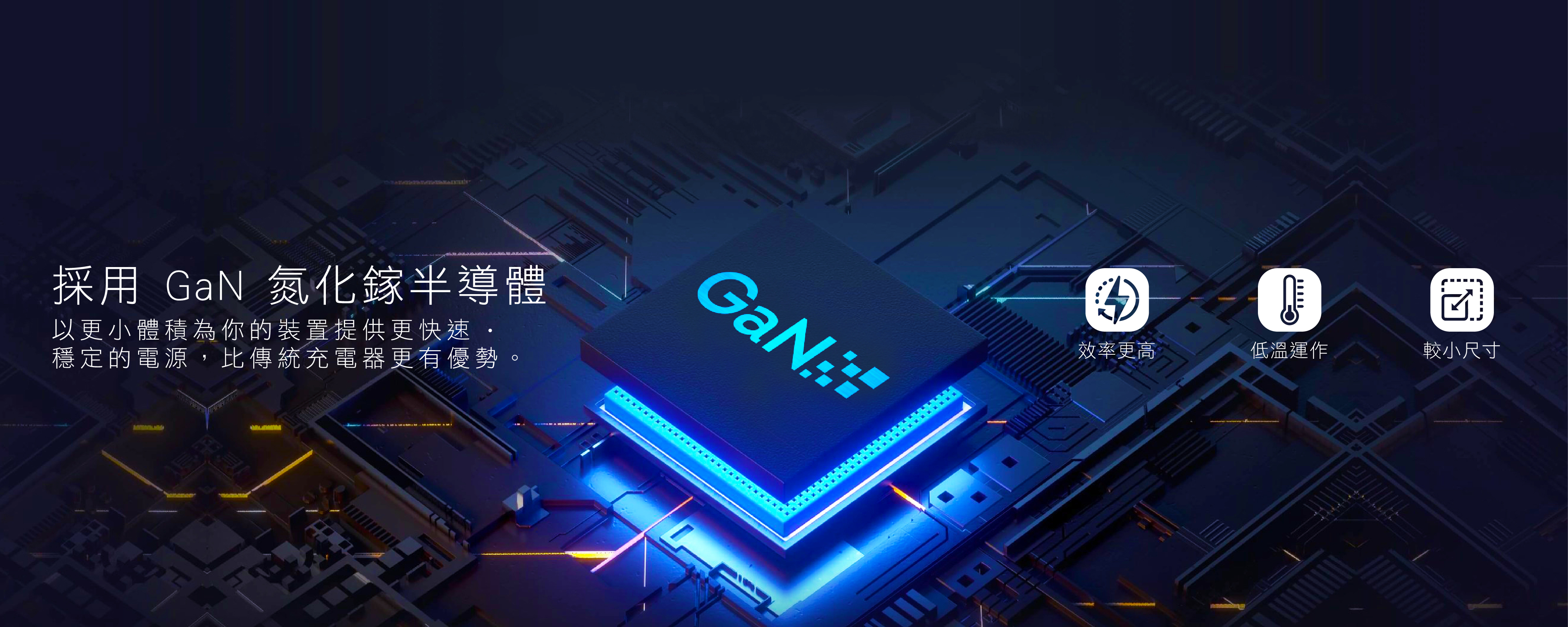 • 採用GaN氮化鎵技術,設計成擁有強勁功率輸出,機身體積小巧的充電器