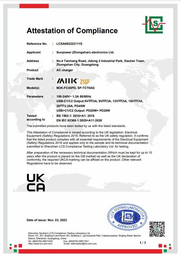 • 兼容多種 iOS 及 Android 流行快充制式,支持 iPhone 8及其後型號、iPad、MacBook Pro 13”、三星,45W超級快充及其他品牌之對應機種