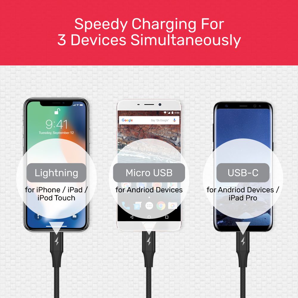 Buy UNITEK C4049RD - 3合1 USB-A 尼龍編織線身快充充電線(1.2m) - 紅色 | Lightning | Type-C | Micro | 可同時充3台裝置 | 最高每端口 5V2.4A | 香港行貨 price in outletexpress .com Hong Kong.In promotion and sale.