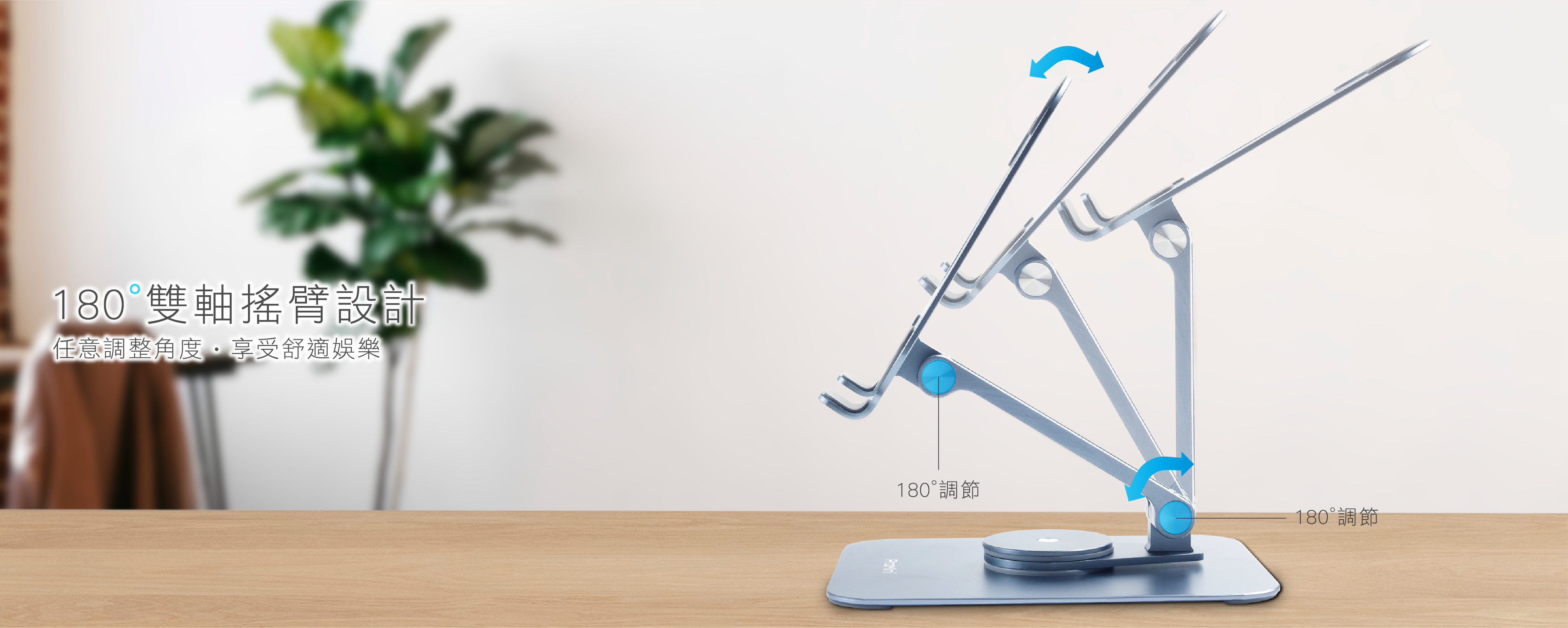 • 180° 可調節雙軸搖臂