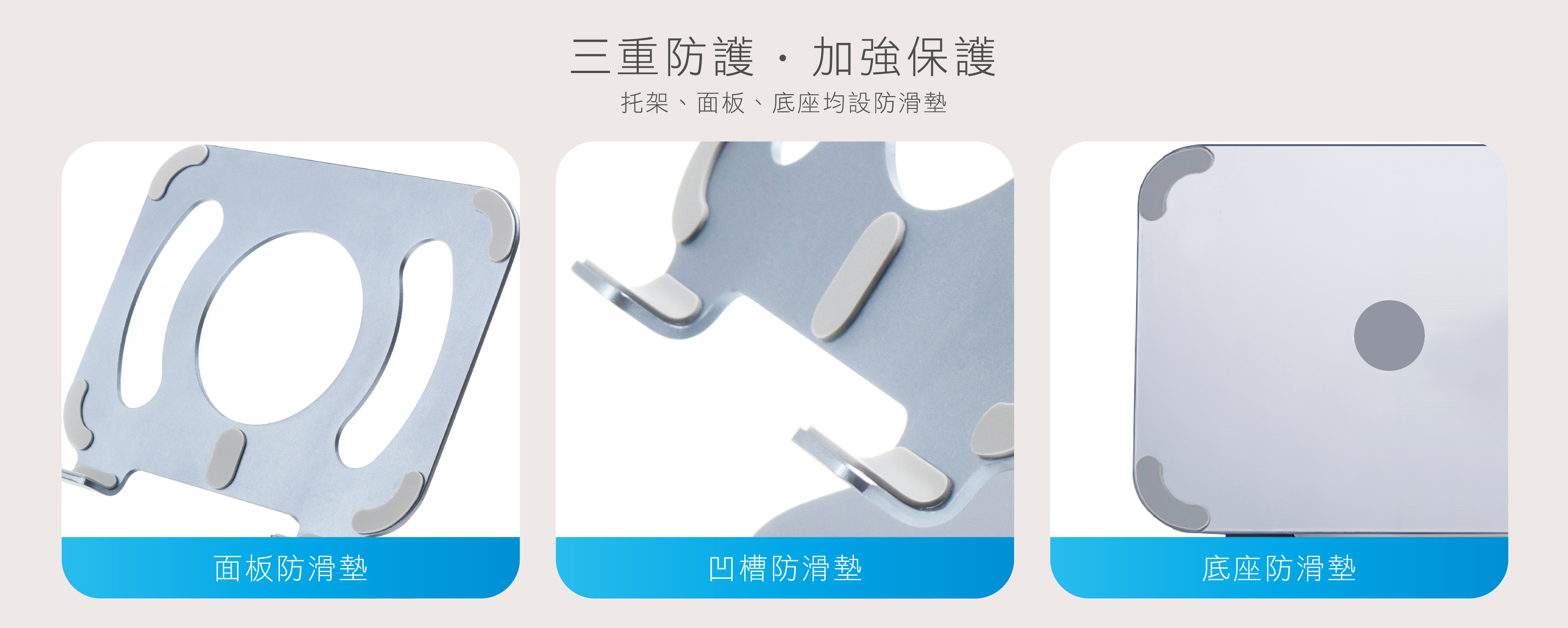 • 3重保護:托架、面板、底座均設防滑墊