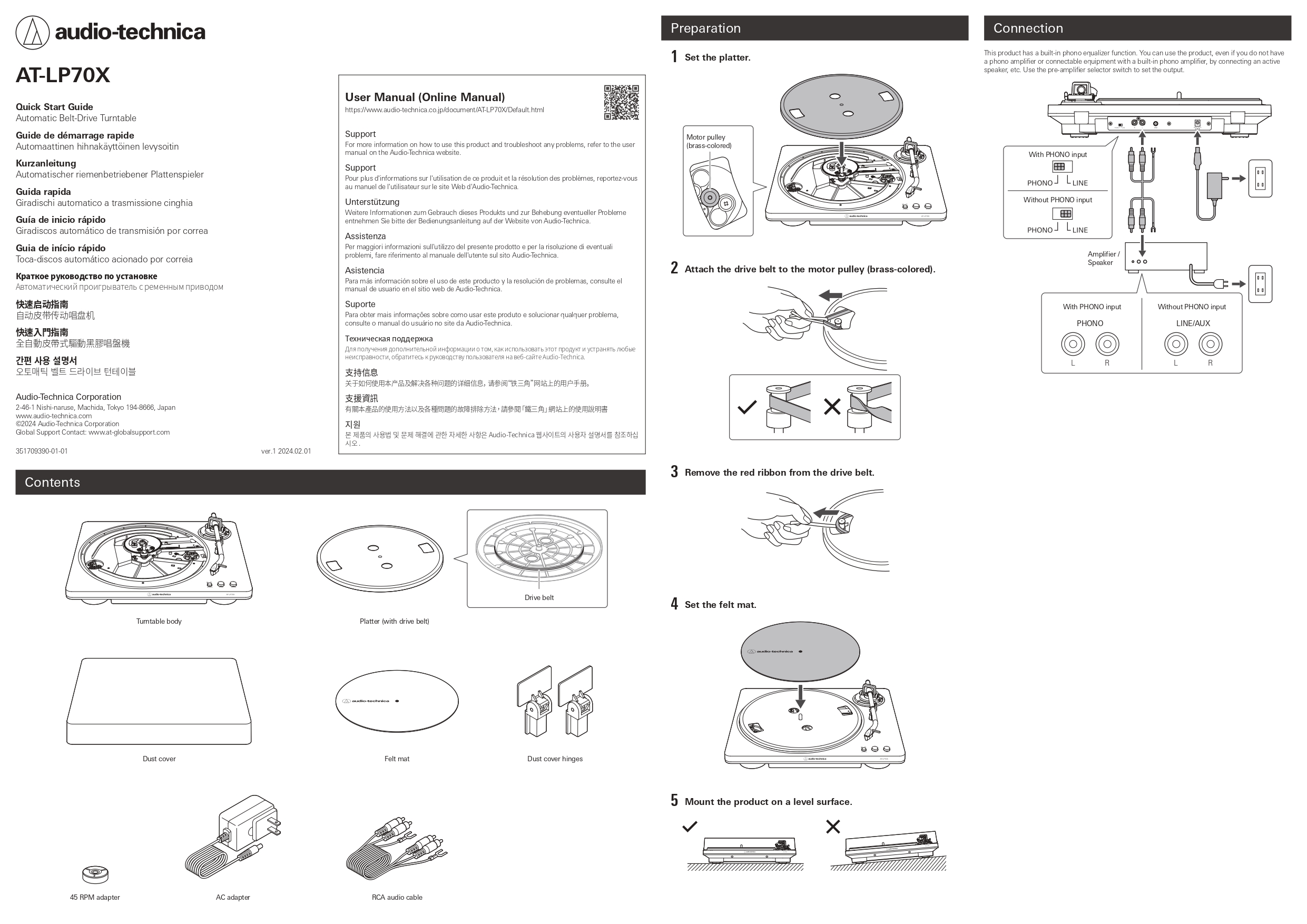 AT-LP70X是一款為黑膠愛好者設計的全自動皮帶驅動唱機。它提供了整合的模擬聆聽體驗,從專輯選擇到享受黑膠唱片的豐富音質。該唱機配備了高性能的AT-VM95C唱頭,整合在J型唱臂中,提供出色的音質和低失真表現。唱頭可透過VM95系列的不同唱針升級,提供普遍只有在高階機型中才有的不同播放體驗。AT-LP70X支援33-1/3和45轉速的唱片,並包括一個可切換的唱頭前級放大器,便於直接連接各種音頻系統,包括家用立體聲組合或有源揚聲器。其三件式抗共振底盤減少了不必要的諧振噪音,而外部供電適配器將交流/直流電源轉移至底盤外部處理,進一步減少了訊號干擾。唱機配有可拆卸的RCA輸出線、一個45轉轉接器和一個可拆卸的防塵蓋。