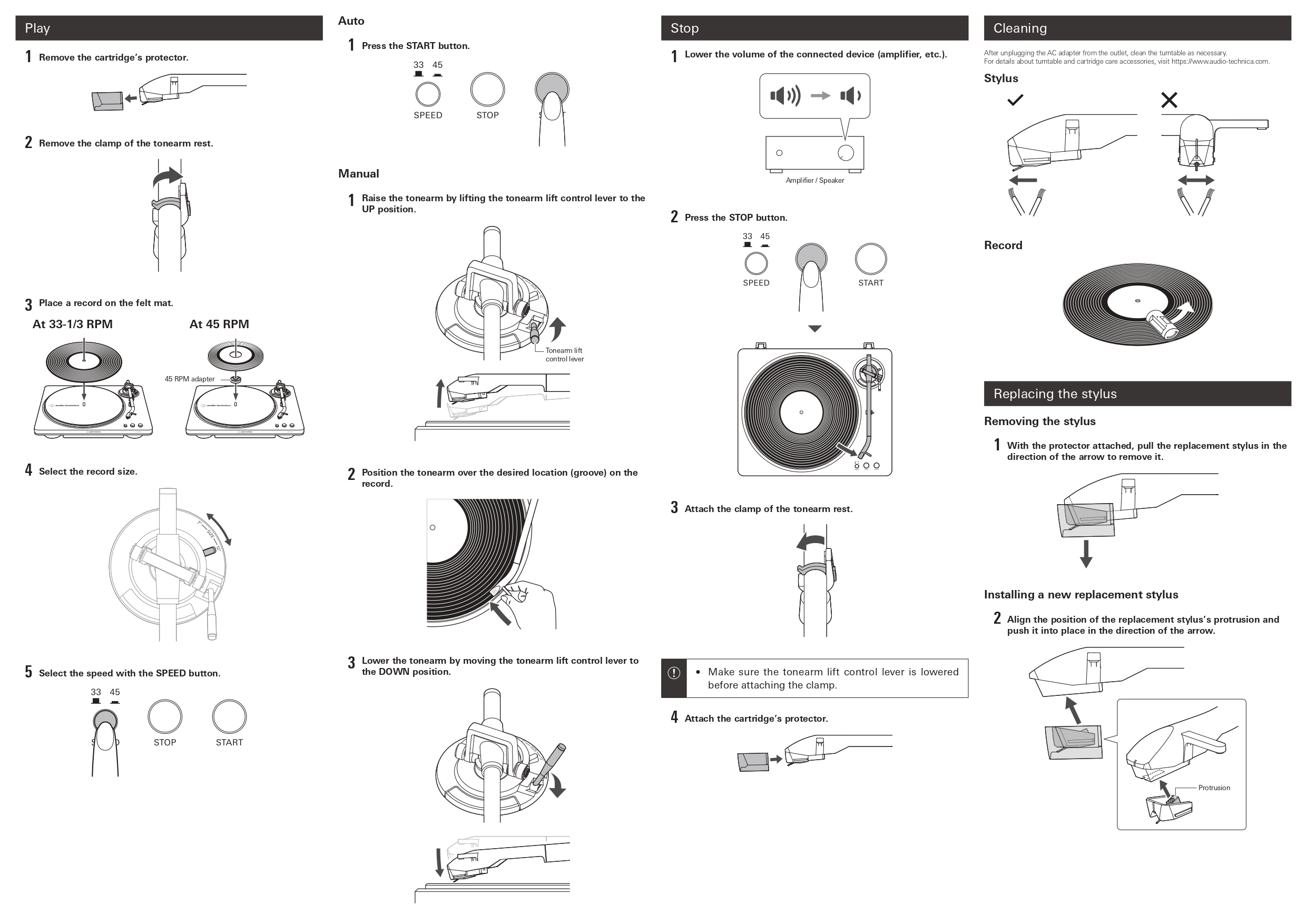 • 自動皮帶驅動操作,支援兩種轉速:33-1/3轉和45轉。