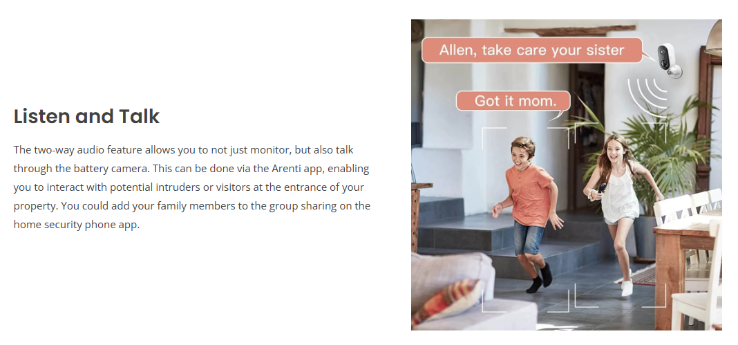 • 音頻功能:雙向音頻,可透過 Arenti 應用程式與他人交流