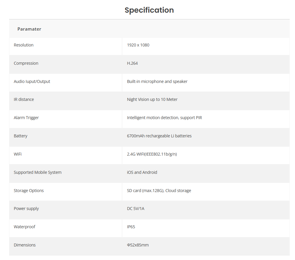 • 防護等級:IP65 等級防水防塵,適應各種惡劣天氣
