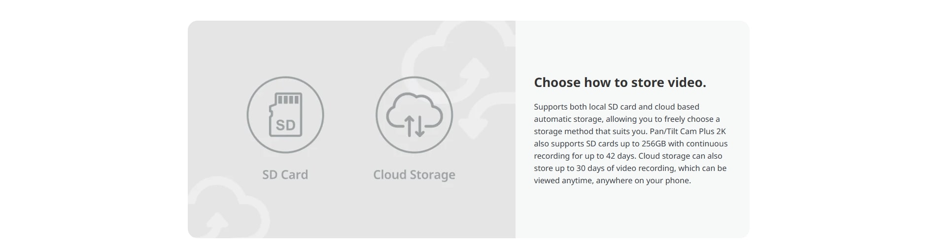 • 雙重儲存:支援最大 256GB microSD卡本地儲存(約42天連續錄影)及雲端儲存(30天)