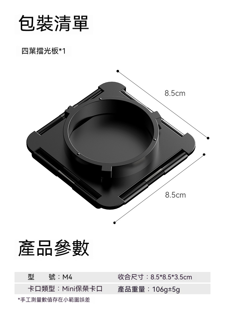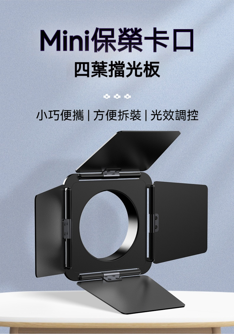 • 黑色Mini保榮卡口四葉擋光板,小巧便攜,方便拆裝