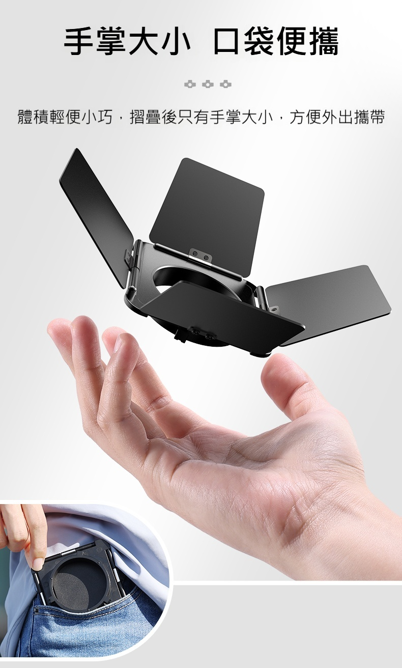 • 手掌大小的口袋便攜設計,摺疊後只有手掌大小,輕便易於外出攜帶