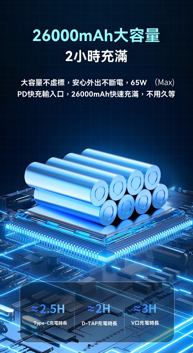 • 大容量26000mAh,不虛標,確保外出不斷電
