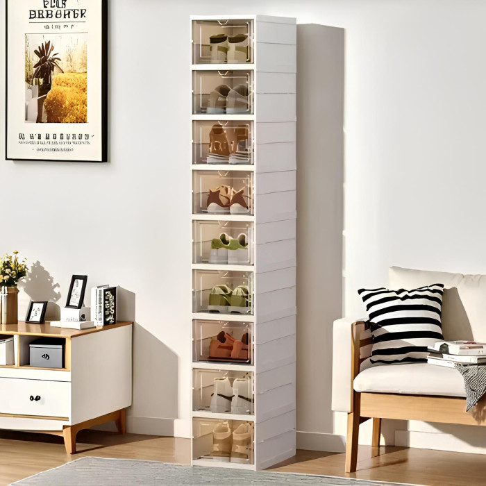 Buy 免安裝加厚可折疊一體成型鞋櫃 - 白色九層 | 透明可視 | 分格收納 | 透氣防潮 | 25.7cm×34.7cm×157.5cm | 穩固疊加 price in outletexpress .com Hong Kong.In promotion and sale.