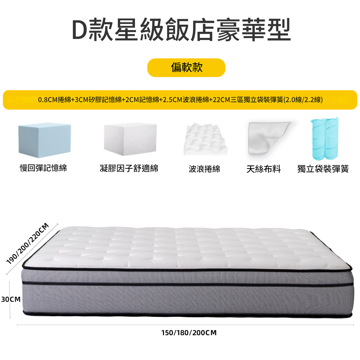 名博星級安睡記憶棉床墊,帶來極致睡眠體驗。無論側睡或仰睡,皆能享受整夜安眠。