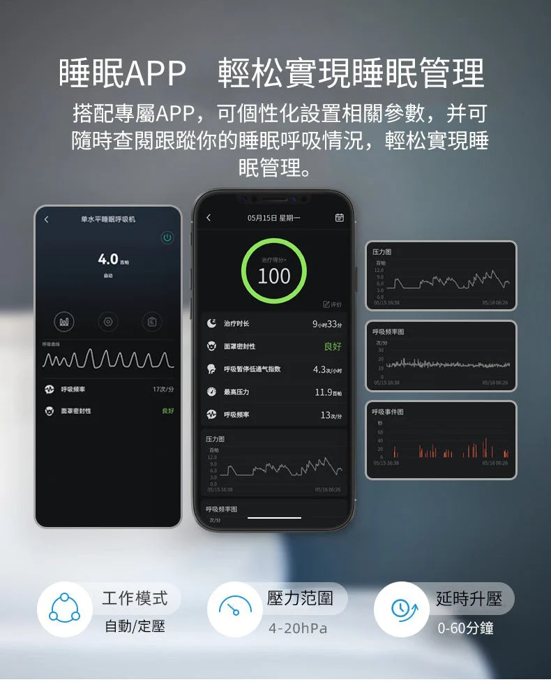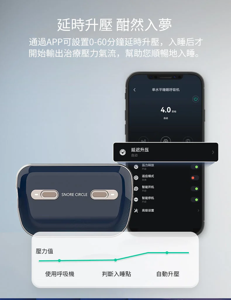 • 智能監察APP|實時分析您的睡眠和鼾聲、呼吸數據。