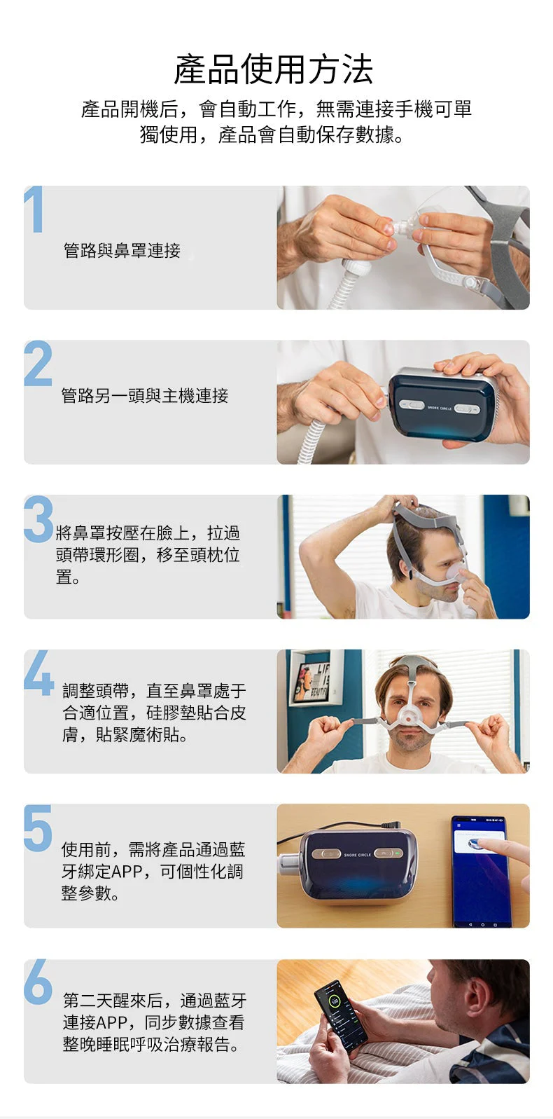• 提供自動正氣壓|減少或消除鼾聲和呼吸暫停問題;