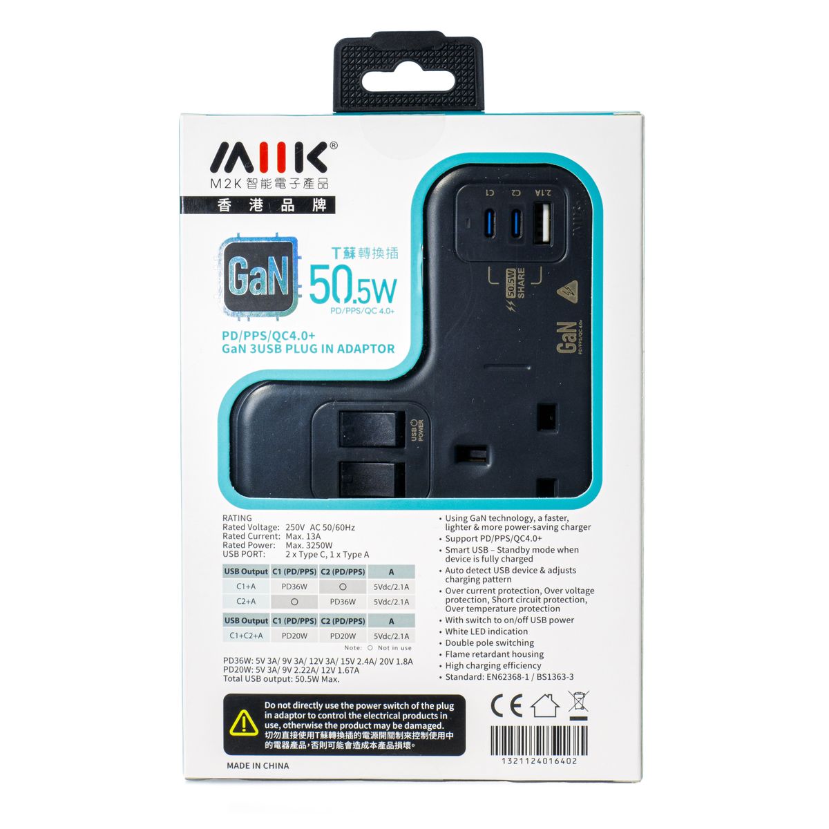 Buy M2K GaN50.5W 快充版T蘇 - 灰色 | 防雷保護 | PD36W快充 | USB電源開關 | 香港行貨 price in outletexpress .com Hong Kong.In promotion and sale.