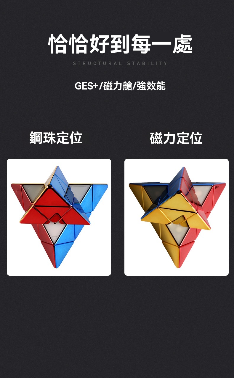 • 金字塔結構優化:正四面體異形設計搭配三階旋轉機制,兼具經典解法與獨特空間思維挑戰。