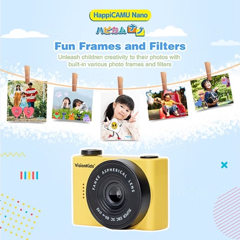Buy VisionKids HappiCamu Nano 迷你兒童數碼相機 - 黃色 | 2000 萬畫素超高畫質 | 內建可愛卡通相框 | 8倍變焦 | 香港行貨 price in outletexpress .com Hong Kong.In promotion and sale.