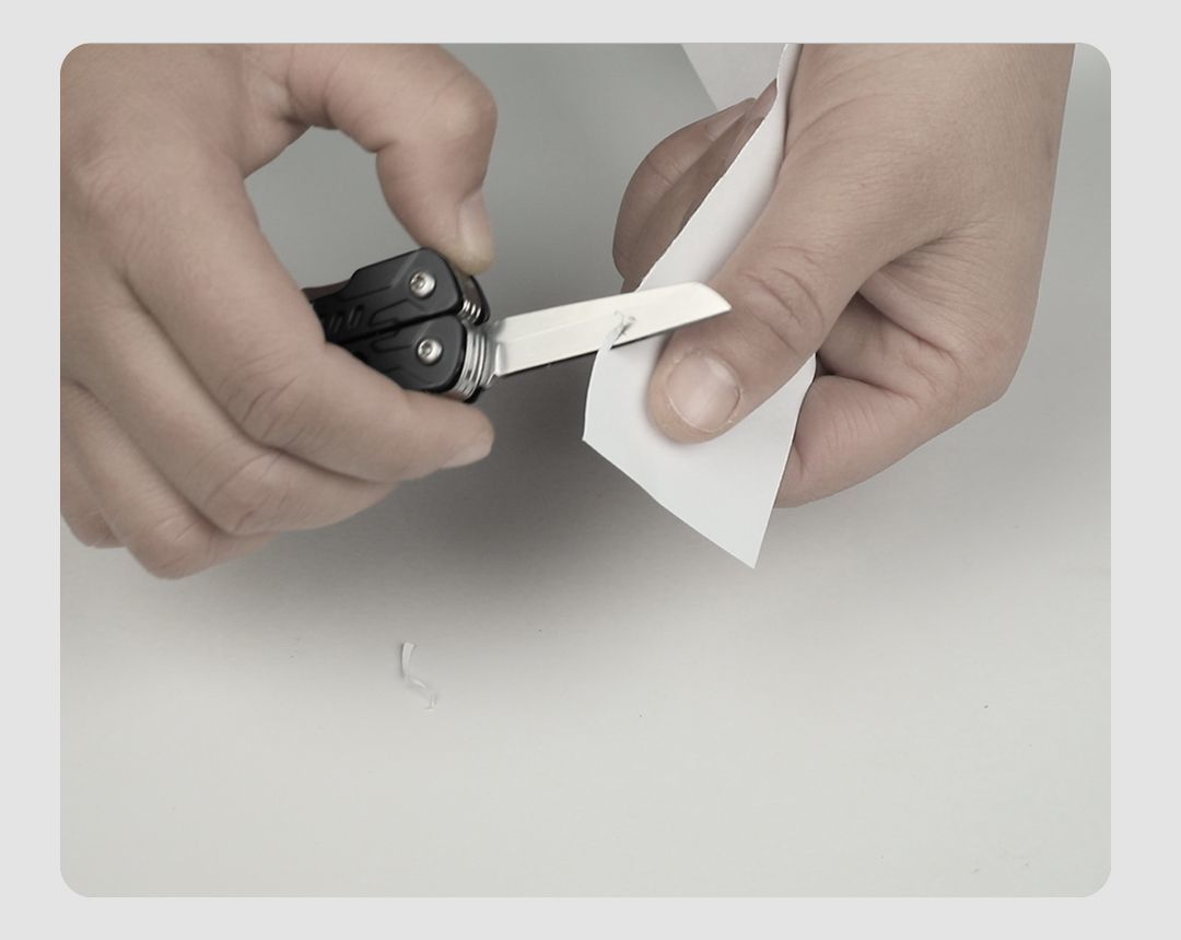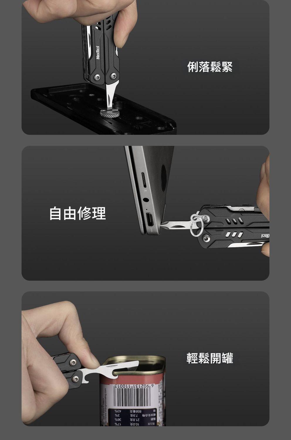 • 10種功能融合鉗子、小刀、螺絲刀、剪刀、開瓶器、開罐器、取卡針等工具,助你從容應對日常生活。
