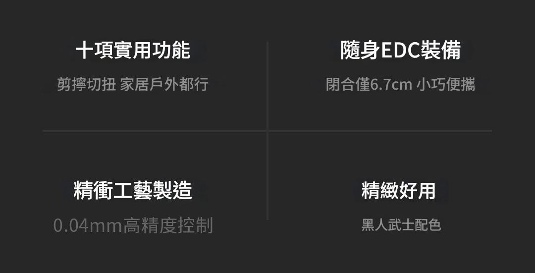 • 十項實用功能隨身EDC裝備,適合剪擰切扭等多種用途,適用於家居和戶外活動。