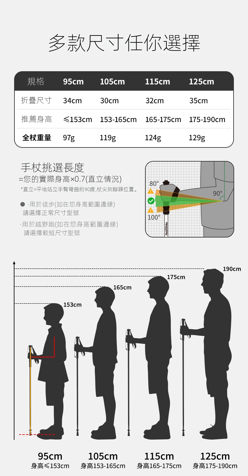 • 多款尺寸選擇,根據身高和使用場景挑選合適長度。