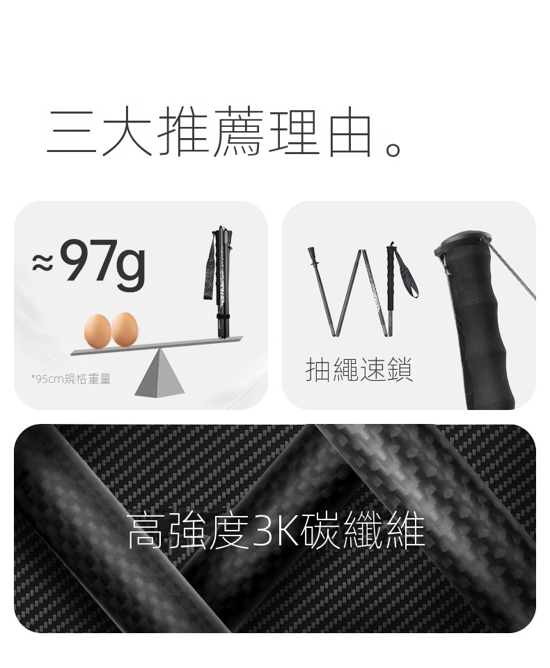 • 名稱:Naturehike AirRush 碳纖維折疊快收行山杖 (CNK2350DS010)