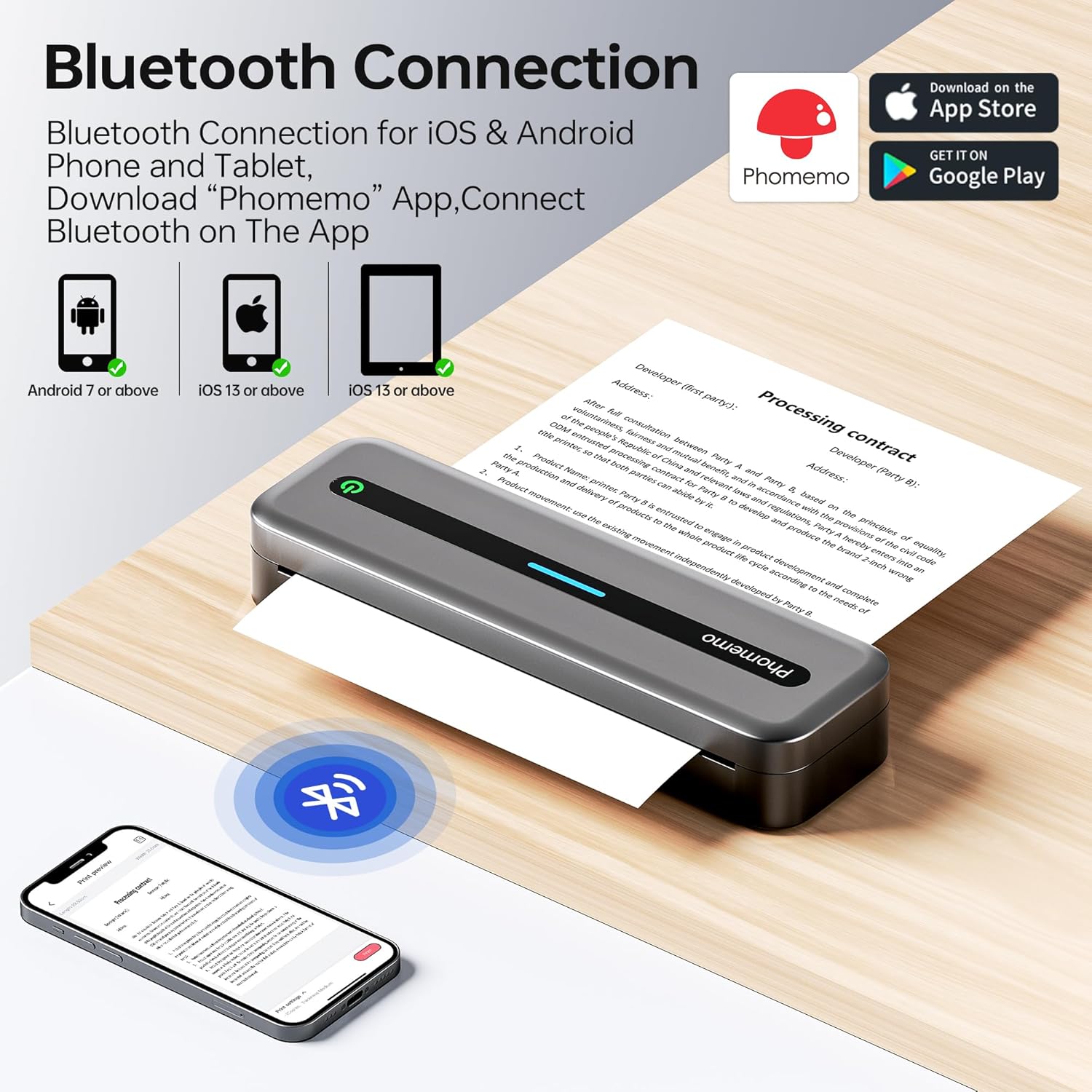 Phomemo M832是一款便利的無線熱感式印表機,重達700克,大小相當於兩部手機,方便攜帶。它支援藍牙和USB連接,相容於iOS、安卓手機及Windows、Mac電腦。能列印8.5"x11"/A4/4.3"/3.1"/2.1"等5種尺寸熱紙,可列印收據、合約、照片等多種內容。採用先進熱敏技術無墨水煩惱,300dpi分辨率,內置2600mAh電池,打印成本低。無論是辦公合約、學習筆記,還是生活合約等,隨時列印。