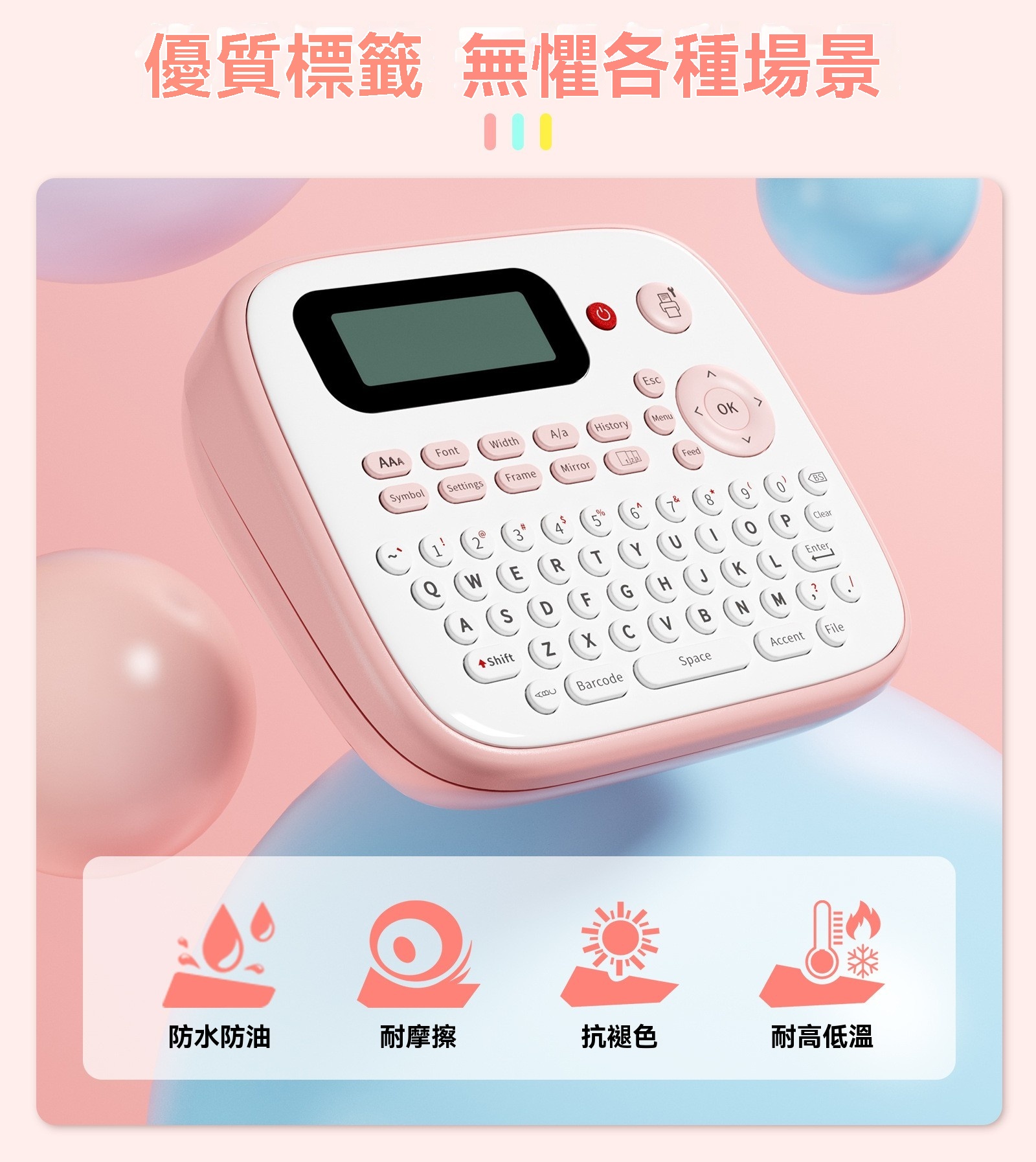 • 熱轉印技術:採用熱轉印技術,讓標籤清晰持久,防水、防油、防腐蝕且耐摩擦,列印效果出眾,能適應多種複雜環境,標籤不易損壞、褪色 。