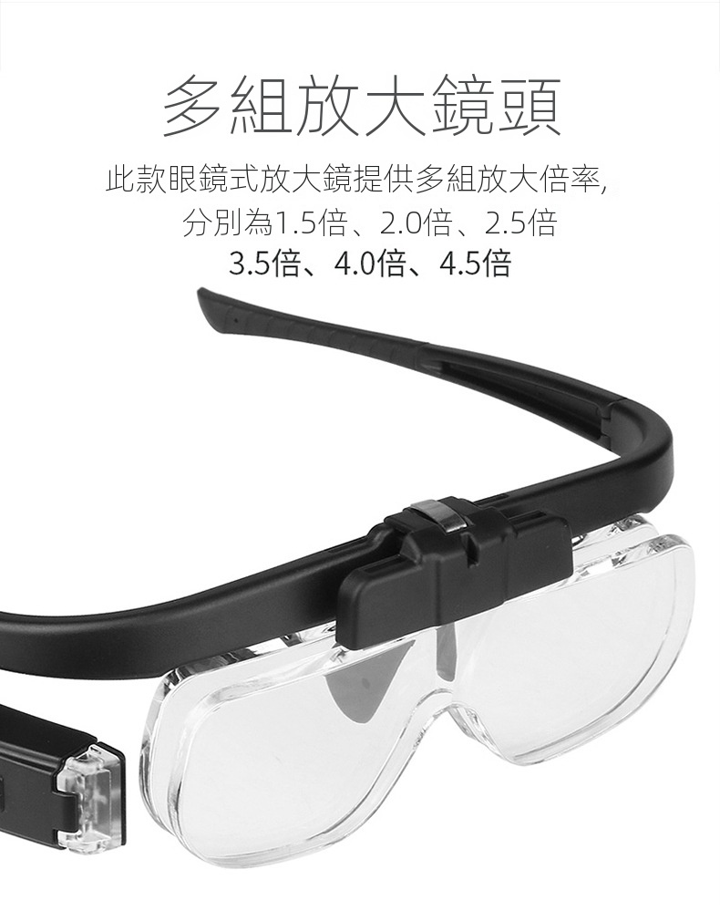 充電眼鏡式放大鏡 | 4.5倍或以下隨意組合放大 | LED可調節照明