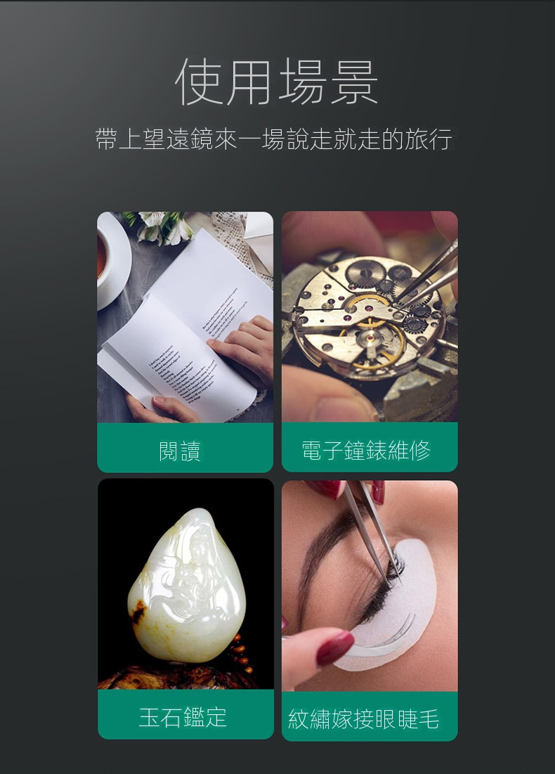• 多用途:適用於閱讀、電子鐘錶維修、玉石鑑定、紋繡嫁接眼睫毛等場景。