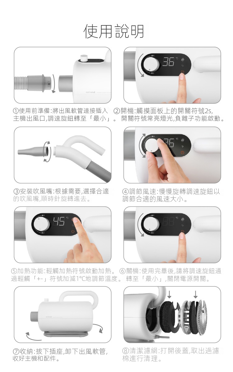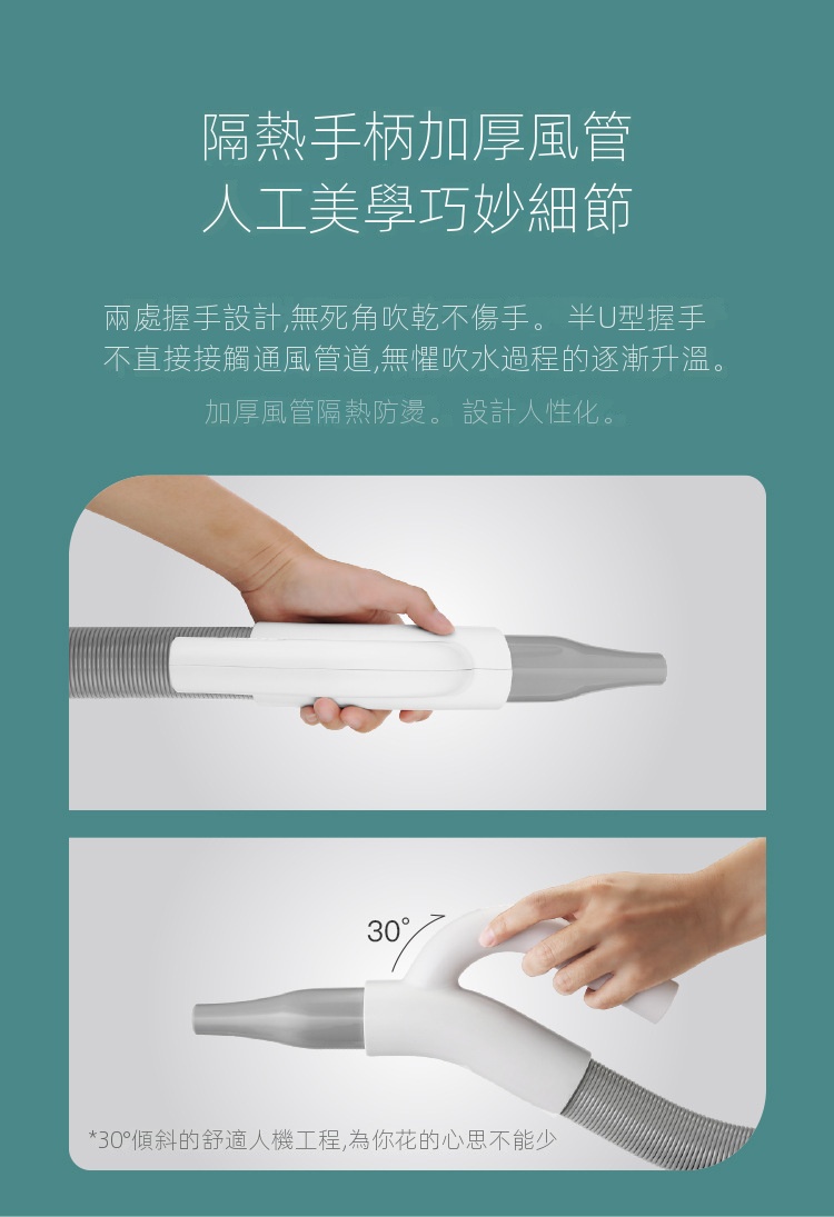 • 隔熱手柄與加厚風管,使用安全舒適。
