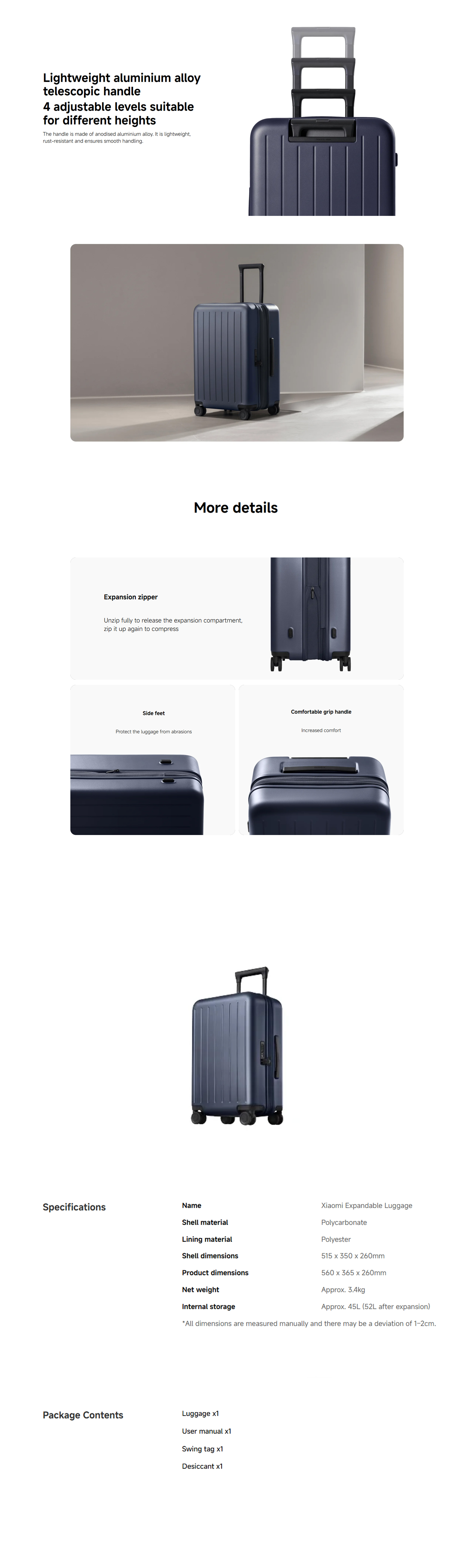 XIAOMI BHR9452GL 20吋可拓展行李箱,是專為現代旅行者設計的智能伴侶。其獨特的擴展層設計,可輕鬆增加30%容量,滿足短途與長途出行的靈活需求。箱體採用高強度複合PC材質,抗壓耐摔;搭配55mm大直徑萬向輪,推行靜音流暢。內部收納分層合理,配備可調節壓縮帶與小物收納區,讓行李整潔有序。此外,平整箱頂可作為臨時桌面,結合TSA海關鎖與輕量鋁合金拉桿,兼顧實用與安全,一箱即可輕裝出發,適應多種旅行場景。