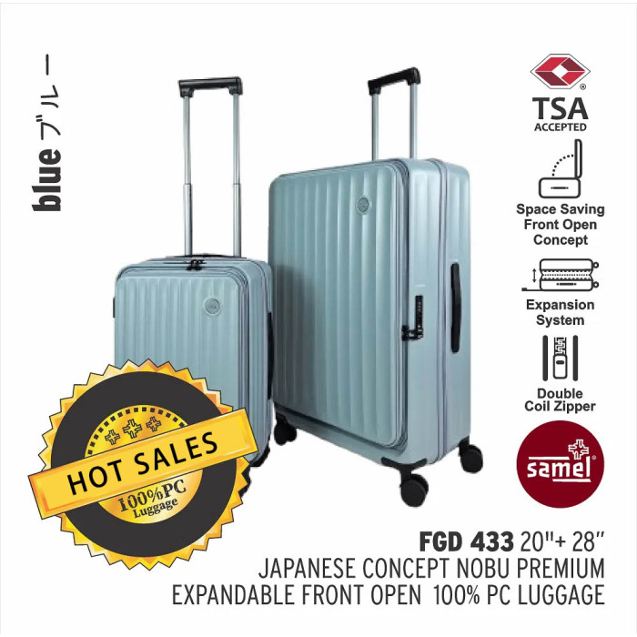 Outlet Express HK 生活百貨城在香港觀塘提供 Samel FGD433 20寸+28寸 PC高級可擴展前開行李箱套裝 - 藍色 在那裡買邊到買或邊度買代理資料及價錢實惠借批發優惠以及公司學校報價,更可送到香港或澳門而部份產品比團購更優惠,更可以為你推薦推介相似產品及優點缺點,請留意我們最新產品價格更新。
