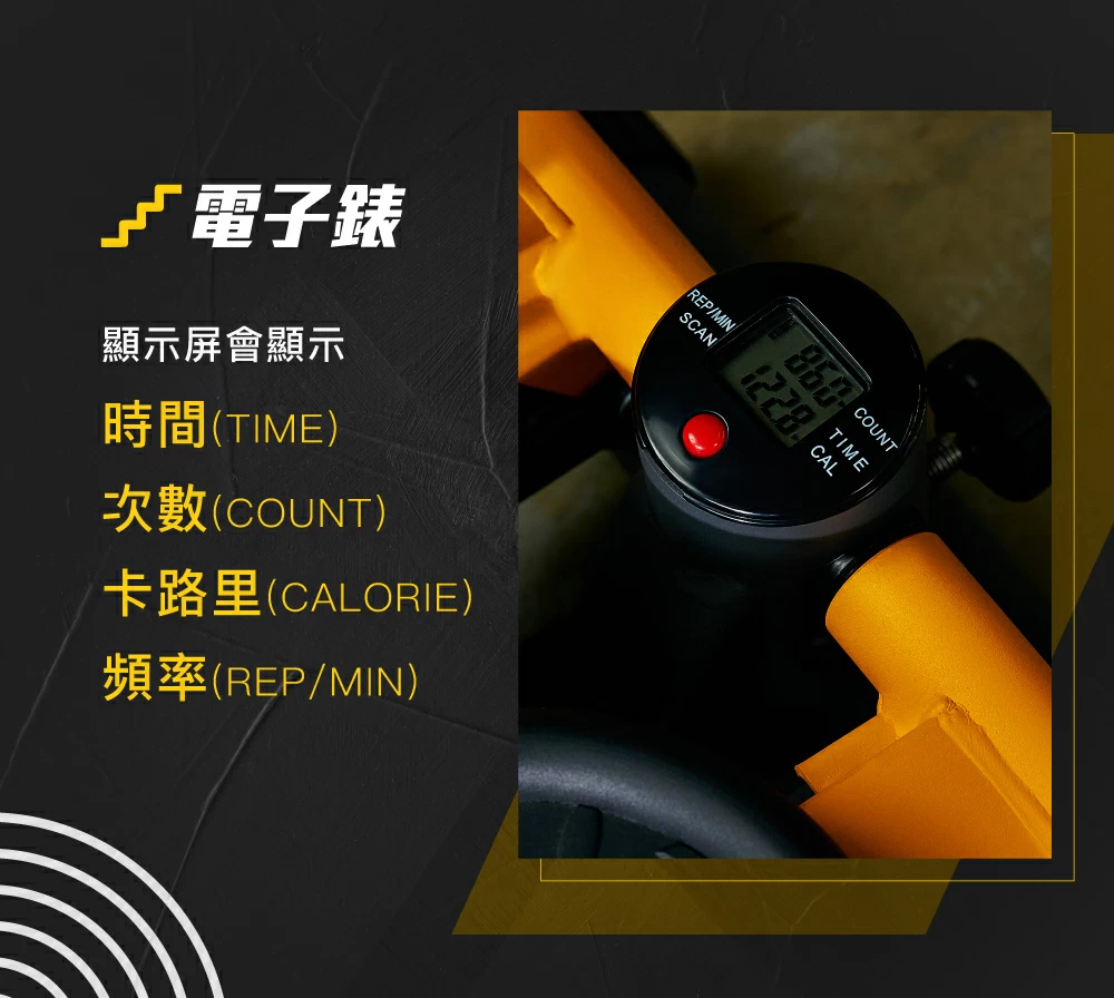 • 表板顯示資訊:時間、次數、頻率及卡路里