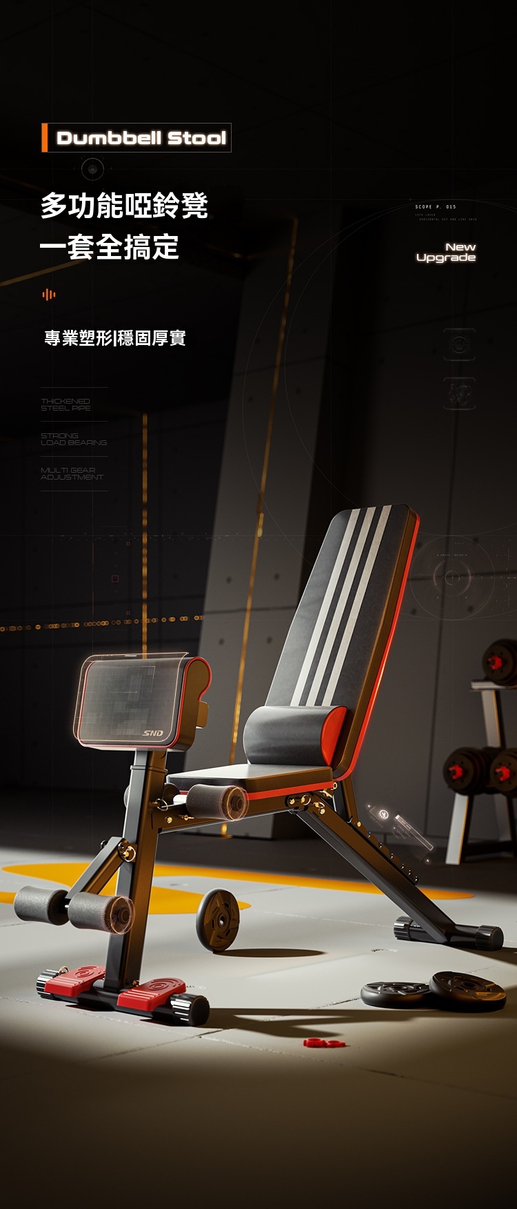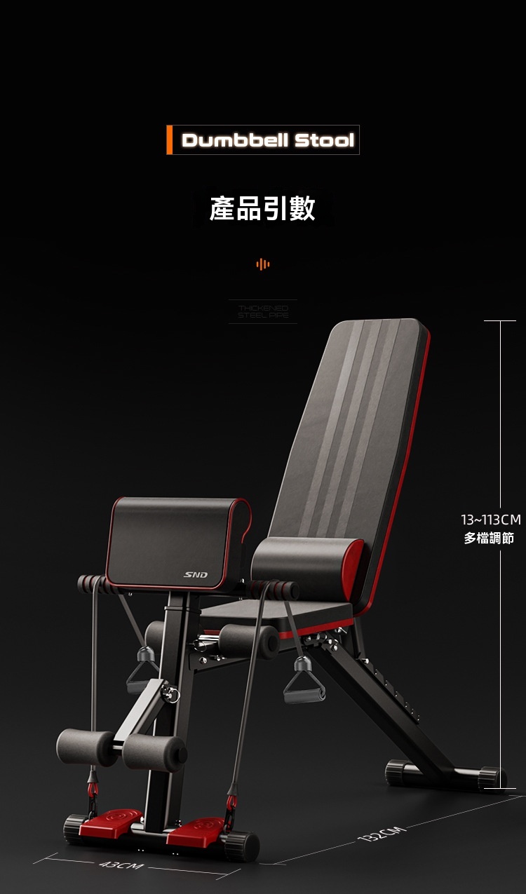 SND 多功能健身啞鈴凳,是室內健身的全能好搭檔!精選加粗鋼管與優質布料打造,結構紮實穩當,運動時不晃不晃,給你滿滿安全感。自帶多檔位角度調節功能,輕鬆適應不同訓練需求,不管是練胸、練背、練核心,還是開展臥推、飛鳥、仰臥起坐,一台就能搞定全身上下鍛煉。人體工學設計搭配高彈泡棉坐墊,貼合身體曲線,久坐不悶汗、發力不硌腰,運動舒適感直接拉滿。家用不佔地方、商用適配健身房,顏值與實力兼備,不管是健身新手還是資深達人,都能輕鬆解鎖高效訓練,趕緊入手開啟你的健身之旅!