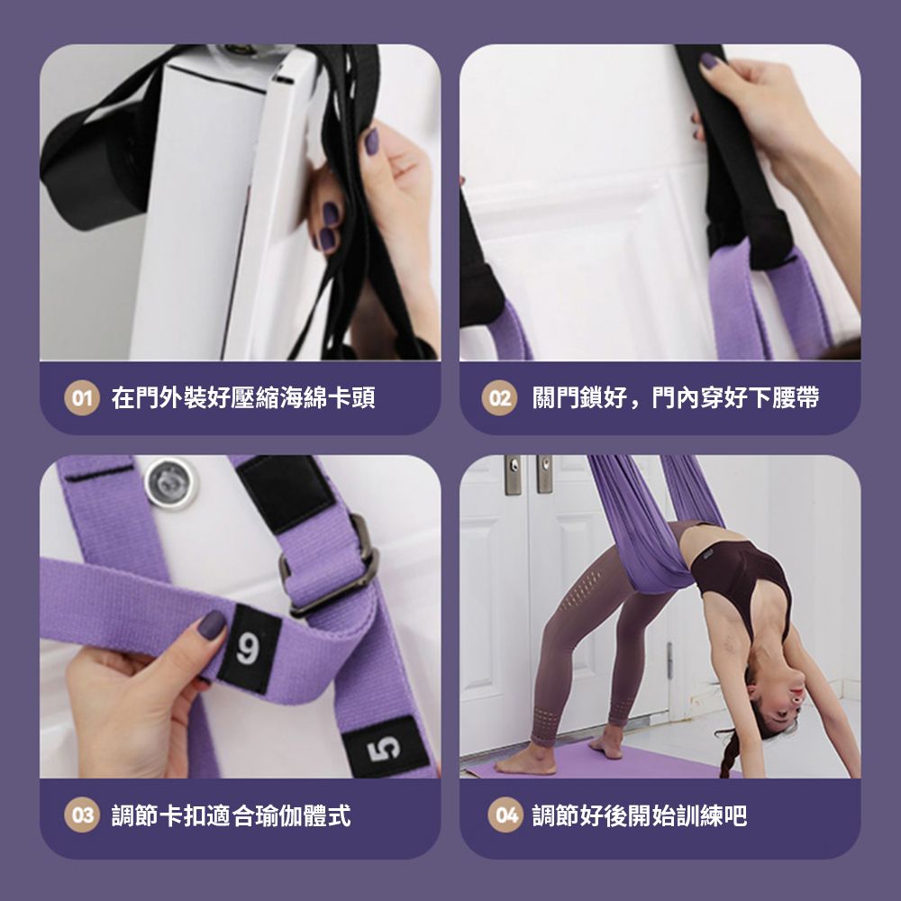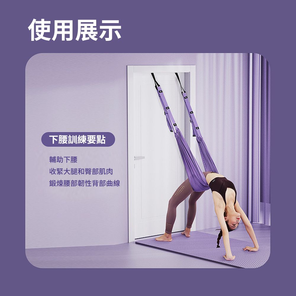 • 升級版空中瑜伽繩倒立伸展帶,結構優化、承重加強!利用門後空間,即可達到健身效果,可調節拉力帶,抗拉耐用,使用安心。