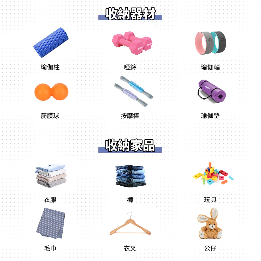 • 大容量,用途廣:運動器材裝得落,家居用品好安放,想裝乜就裝乜
