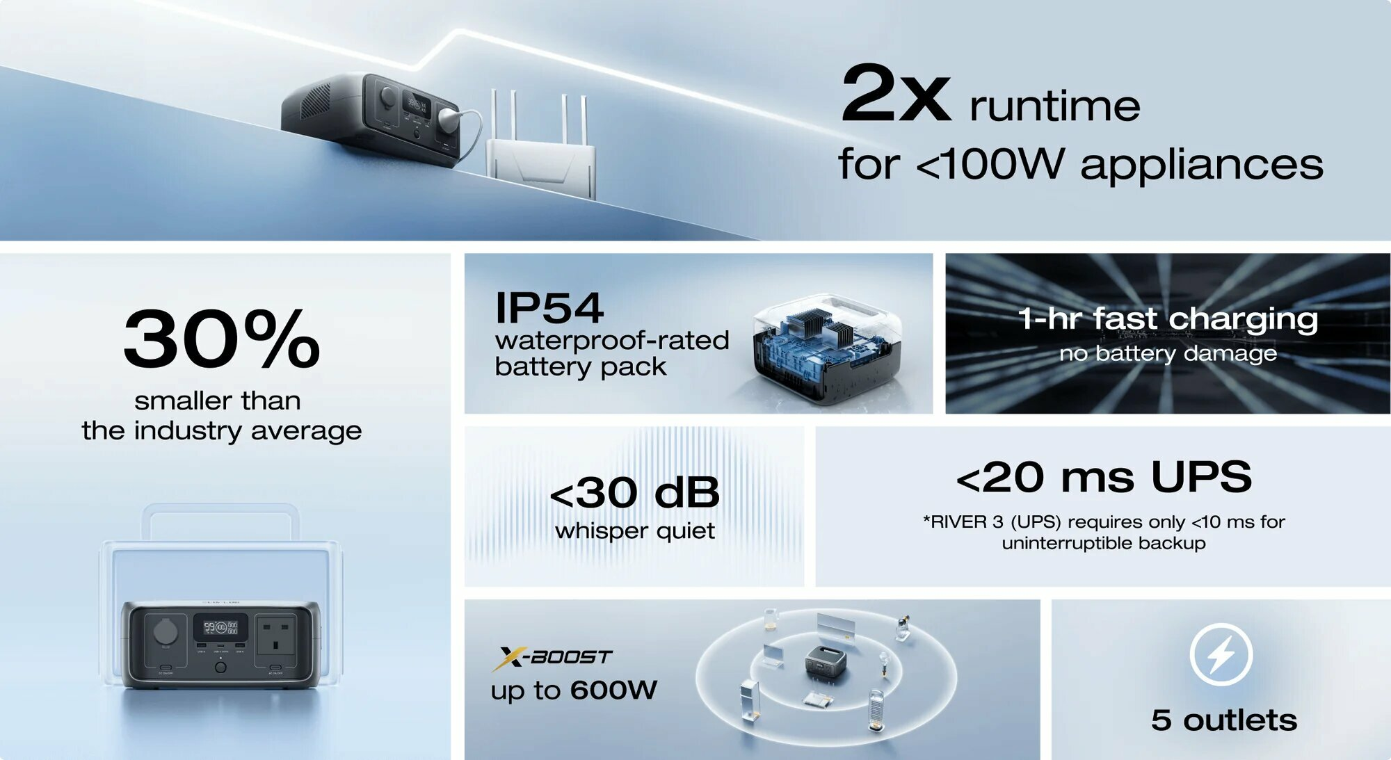 Outlet Express HK 生活百貨城在香港觀塘提供 EcoFlow - RIVER 3 AC萬能移動電源電箱 (245Wh) | 300W 輸出 | UPS 不斷電功能| 流動電能站 | 香港行貨三年保用 在那裡買邊到買或邊度買代理資料及價錢實惠借批發優惠以及公司學校報價,更可送到香港或澳門而部份產品比團購更優惠,更可以為你推薦推介相似產品及優點缺點,請留意我們最新產品價格更新。