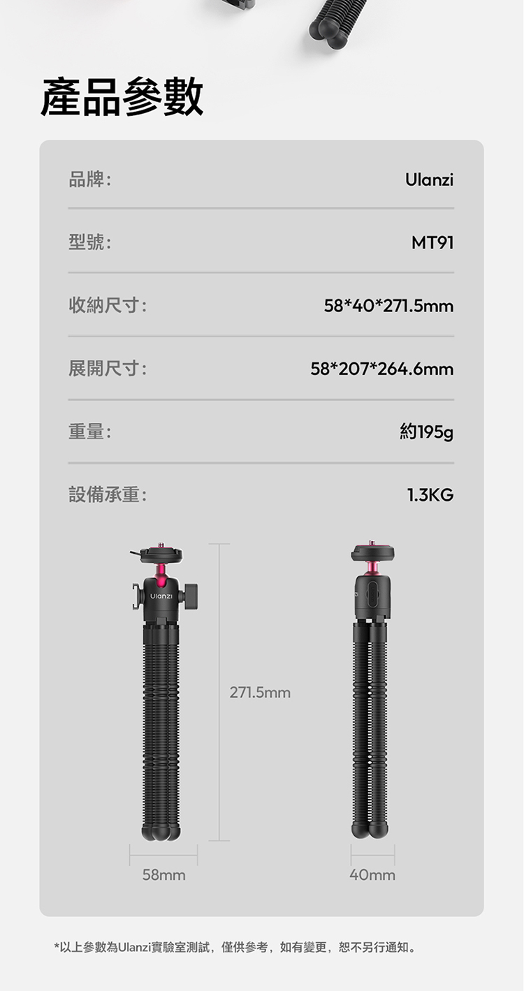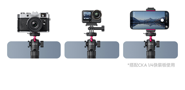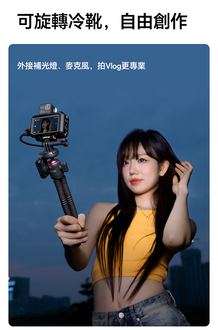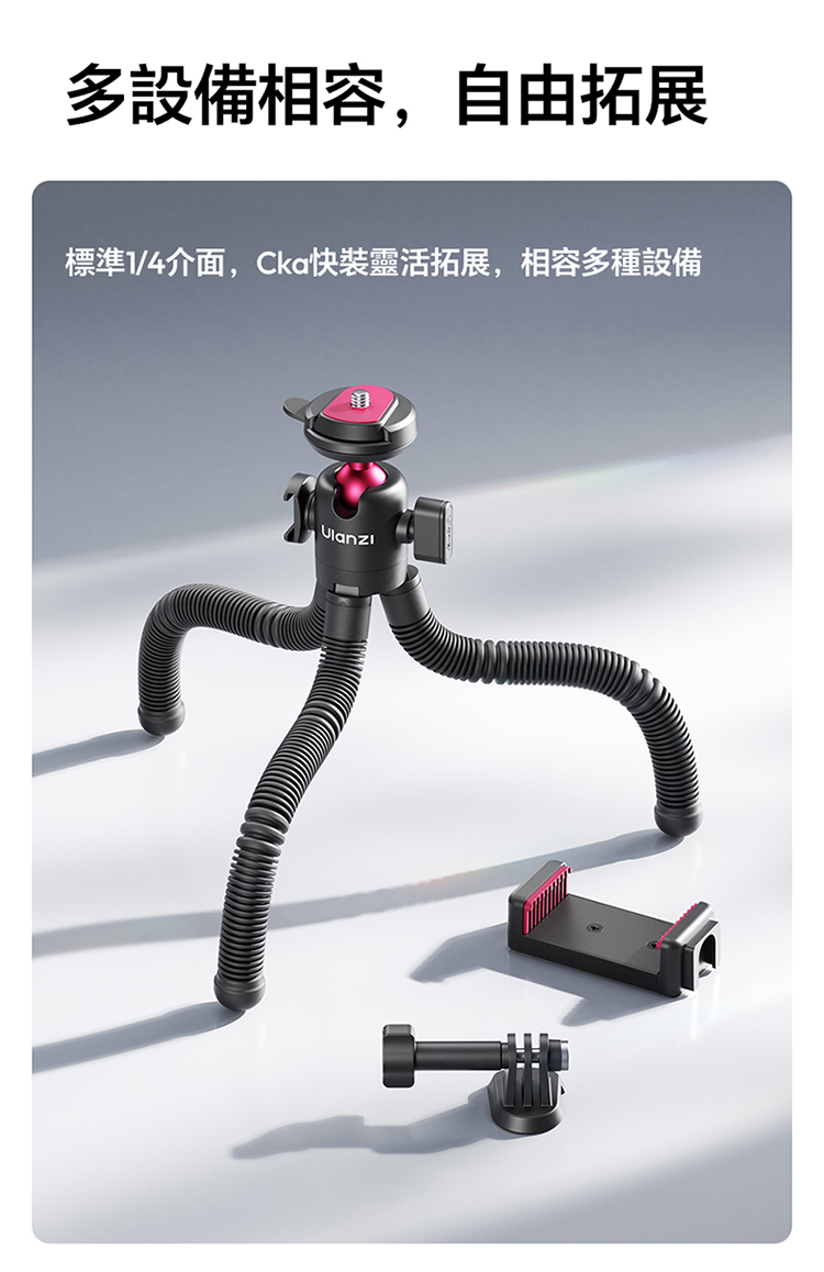 • 多設備相容,靈活拓展:標準 1/4″ 螺孔設計,相容相機、手機夾、補光燈等多種配件