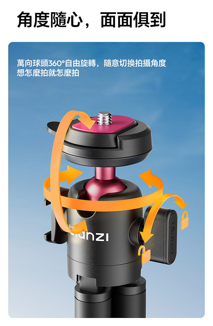 • 多維度球頭,角度隨心:萬向球頭設計,零死角自由旋轉,直拍、橫拍、俯拍皆可輕鬆完成